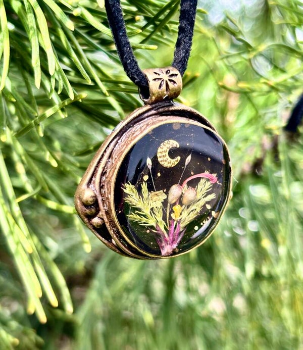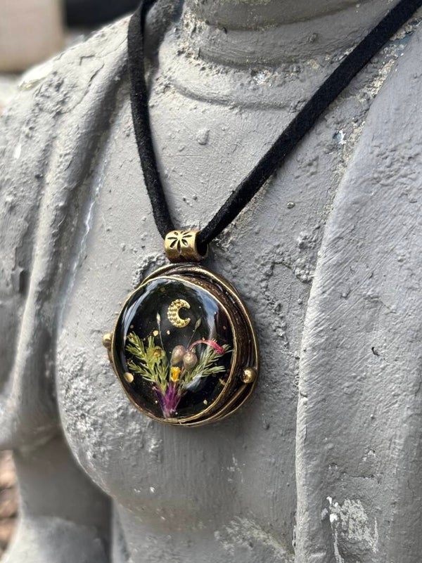 So entsteht ein Schmuckstück, das die Atmosphäre des Waldes und die Magie des Mondes einfängt – ruhig, geheimnisvoll und voller natürlicher Details. Perfekt auch für Naturmystiker und Hexen, die waldmagische witchy vibes bei sich tragen möchten.